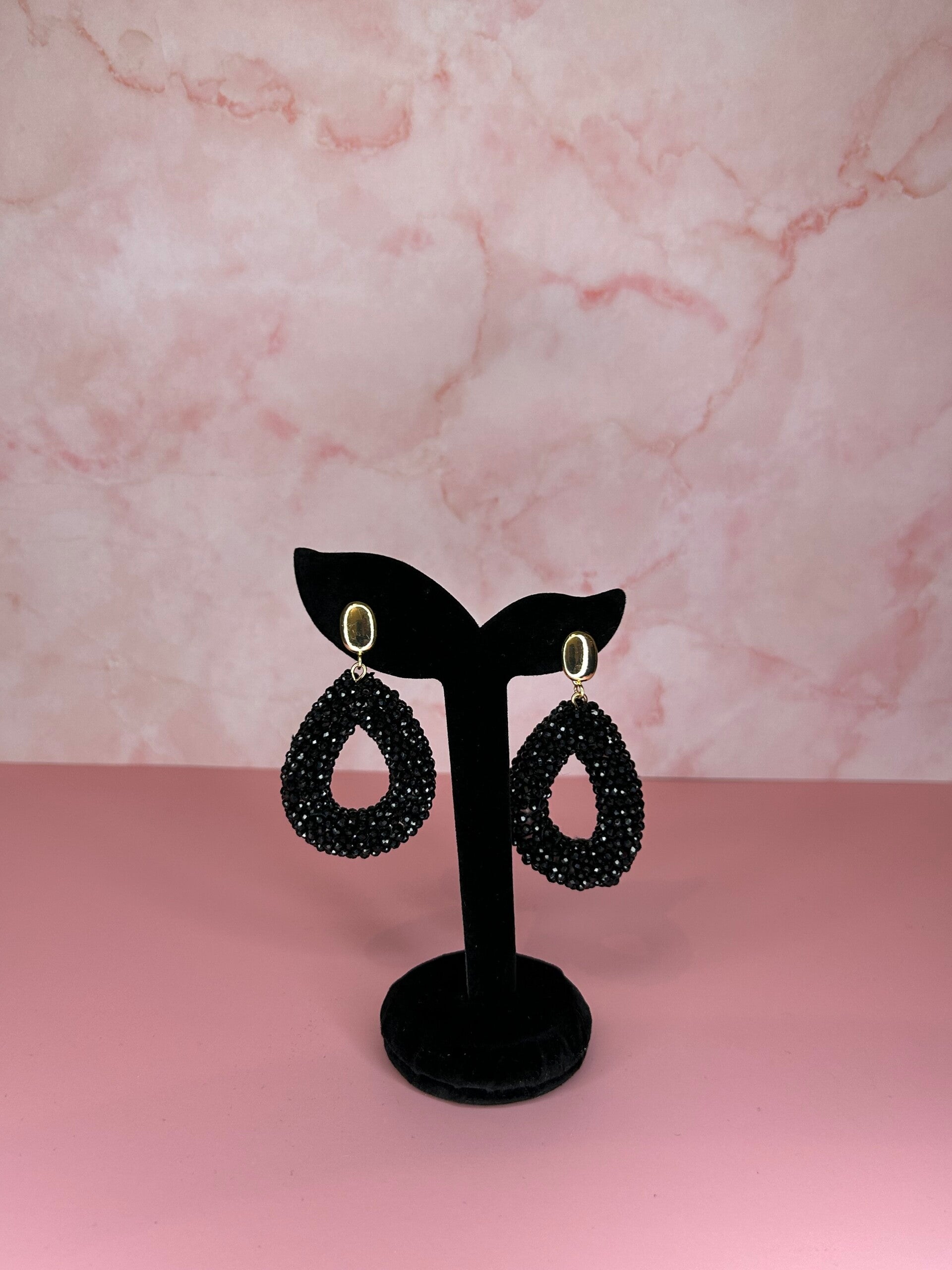 Druppelvormige oorbellen kralen zwart