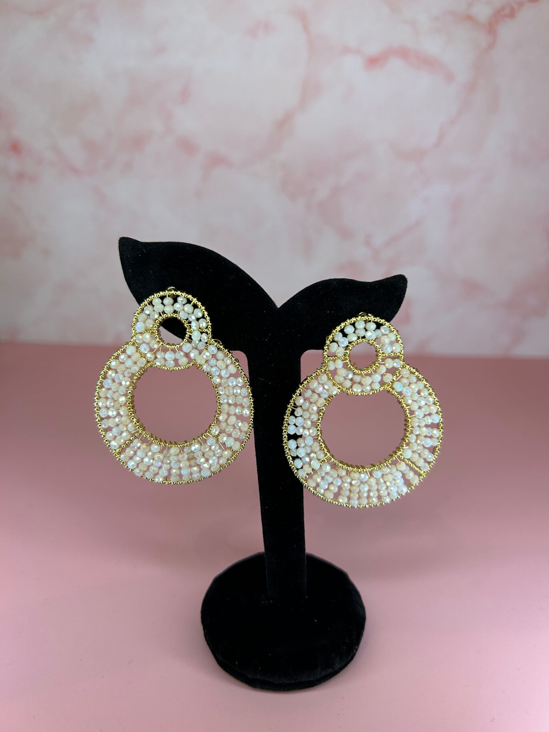 Kralenoorbellen dubbele ronde wit