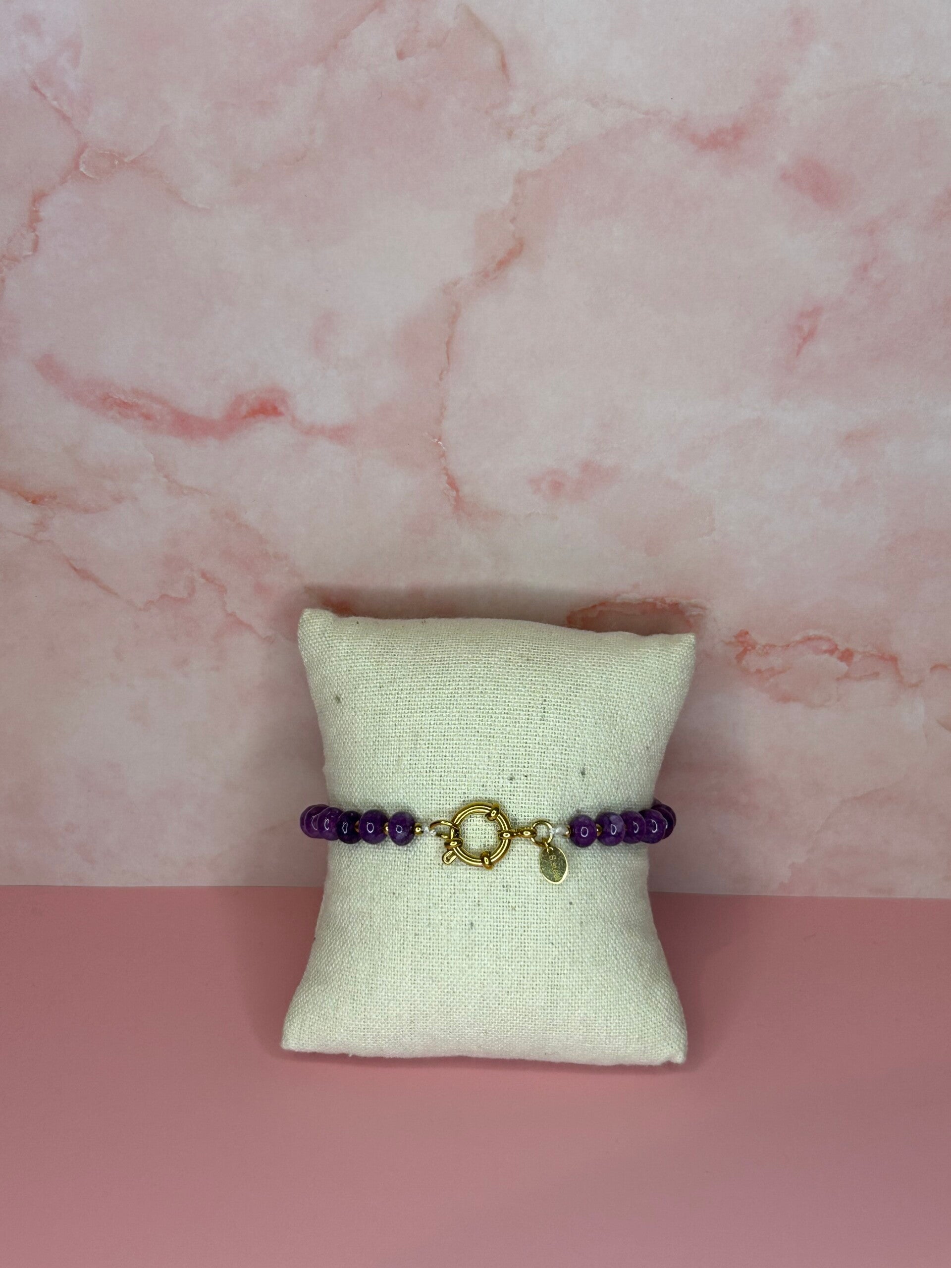 Parelarmband paars met gouden kraaltjes