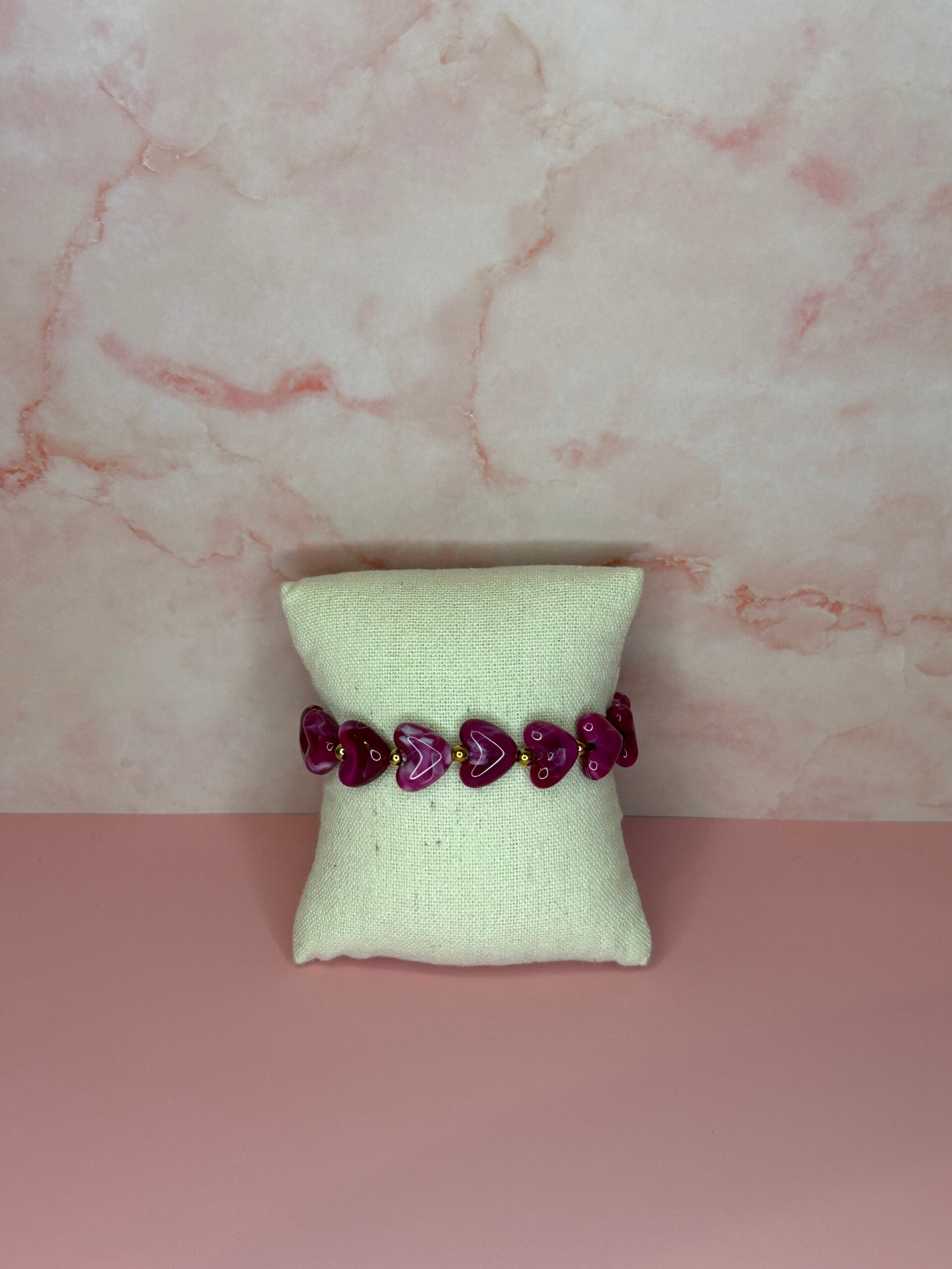 Elastische armband hartjes paars